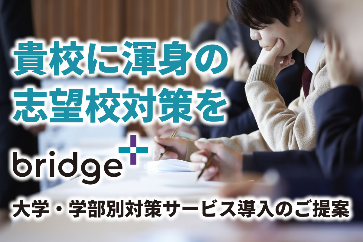 先生方が個別に各大学の過去問を分析なさる必要はありません。bridge+にすべてお任せください。先生方による業務効率化・業務負担の軽減に貢献します。