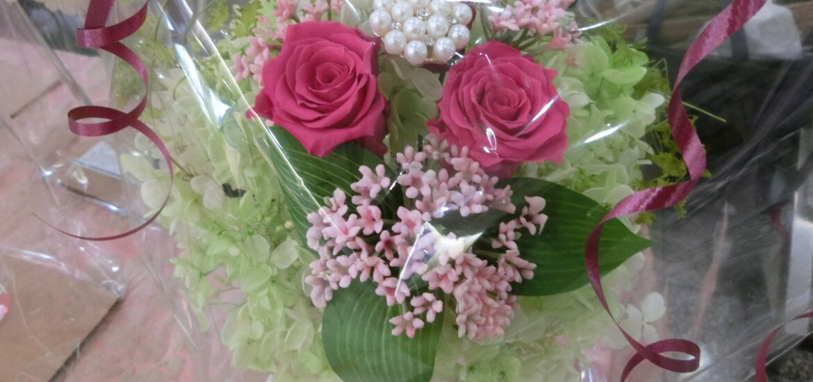 生花のアレンジメント有り、イラストグッズに似顔絵有り