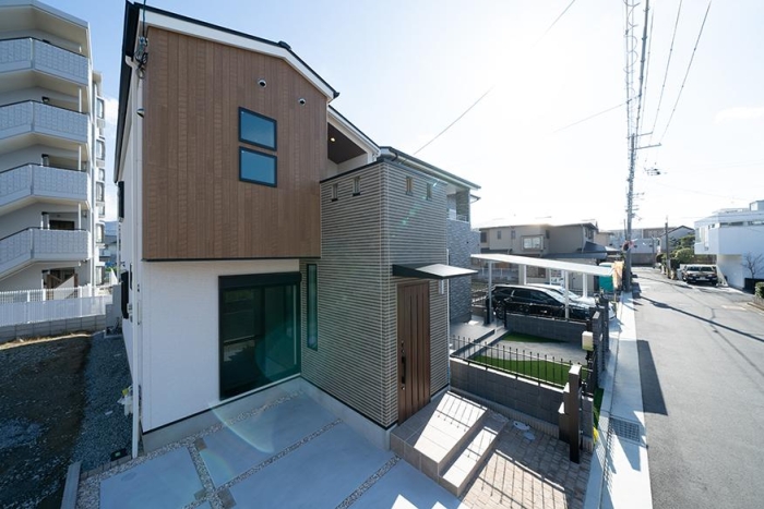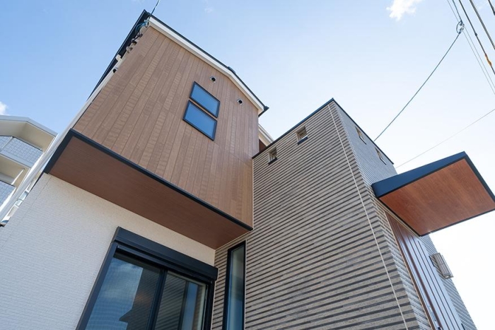 温かみあるウッディスタイルをアクセントに取り入れた、長年住んでも飽きのこない外観。