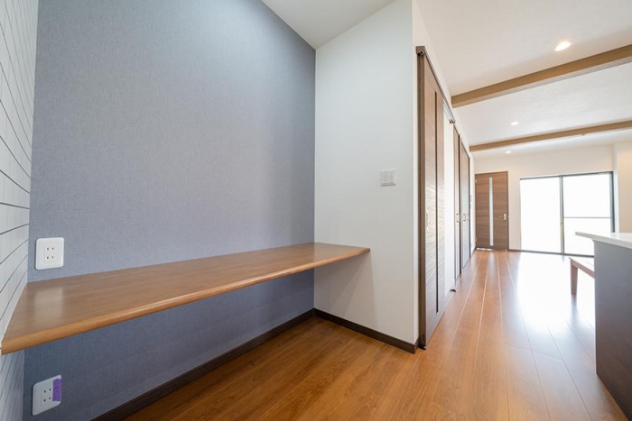 キッチンの横にスタディースペースを配置、奥様の趣味の場として、お子様の宿題スペースとして多目的にご利用いただけます。