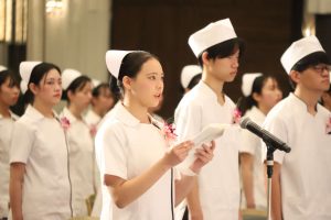 戴帽式とは、看護学科1年生が病院実習を前に行う儀式であり、