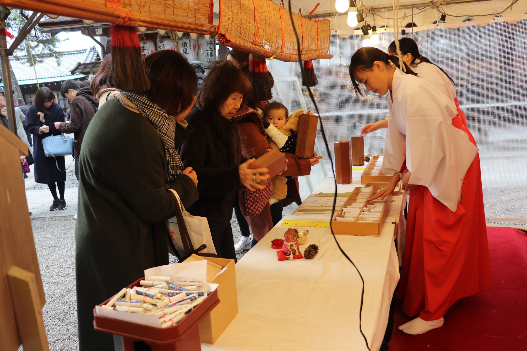 初詣のあとは今年最初の運試し、おみくじを引いたり