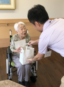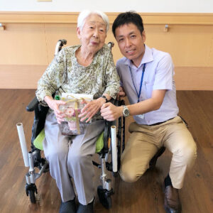 新緑苑ブログ 2023年08月08日 イベント ブログ 100歳のお祝い🎉 皆様こんにちは! 事務部の中倉です(#^.^#) ご入居者様の佐野英子様が先日 100歳の誕生日を迎えられました(*´▽`*)🎉♥ いつも周囲のご入居者様、職員を気に掛け、声を掛けて下さいます🌷 穏やかな話し方と笑顔に、私達もほっこりとした気持ちにさせてもらえます(*^^*)°˖✧ 施設よりささやかながらプレゼントをおわたししました(^.^)♥ これからもますますお元気で、ますます若々しくお過ごし下さい♪♬ 100歳、おめでとうございます(#^^#)°˖✧ « お寿司レク🍣 | ブログ一覧 | 7月のお楽しみおやつ » 最近の投稿 【必見!】大津市で有料老人ホームの入居をご検討中の方必見!みんなの笑顔キャンペーン開催! 7月のちぎり絵レク 七夕飾り🎋 書道レク 鰻の日 カテゴリー イベント ブログ レクリエーション 介護のあれこれ 施設の案内 食事 サービス 生活支援サービス 健康管理サービス 食事サービス 入浴 透析 レクリエーション 居室・共用部 居室 共用スペース 全体見取り図(館内図) 費用について 入居費用のプランについて ご入居の一時金について 月額費・その他 入居条件・必要なもの ご入居手続きの流れ ご入居の基準 ご入居の際に必要なもの ロケーション・アクセス ロケーション アクセス フォトアルバム 施設について 施設の特徴 一日の流れ 雰囲気・スタッフ紹介 施設の概要 よくあるご質問 企業情報 会社概要 一般事業主行動計画 その他事業所の案内 施設からお知らせ あんしん生活提案書 ご入居者様エピソード コンソルテ新緑苑便り 新緑苑ブログ その他 重要事項説明書(抜粋) テレビCM お問い合わせ プライバシーポリシー カスタマーハラスメント サイトマップ 充実の生活をお届けいたします コンソルテ新緑苑便り お食事について イベントレクリエーション 入浴設備でリフレッシュ コンソルテ新緑苑のブログ チラシデータはこちら パンフレットはこちら 無料でお問い合わせする 0120-106-006 資料請求・ご相談!メールでお問い合わせ 閉じる グループ施設